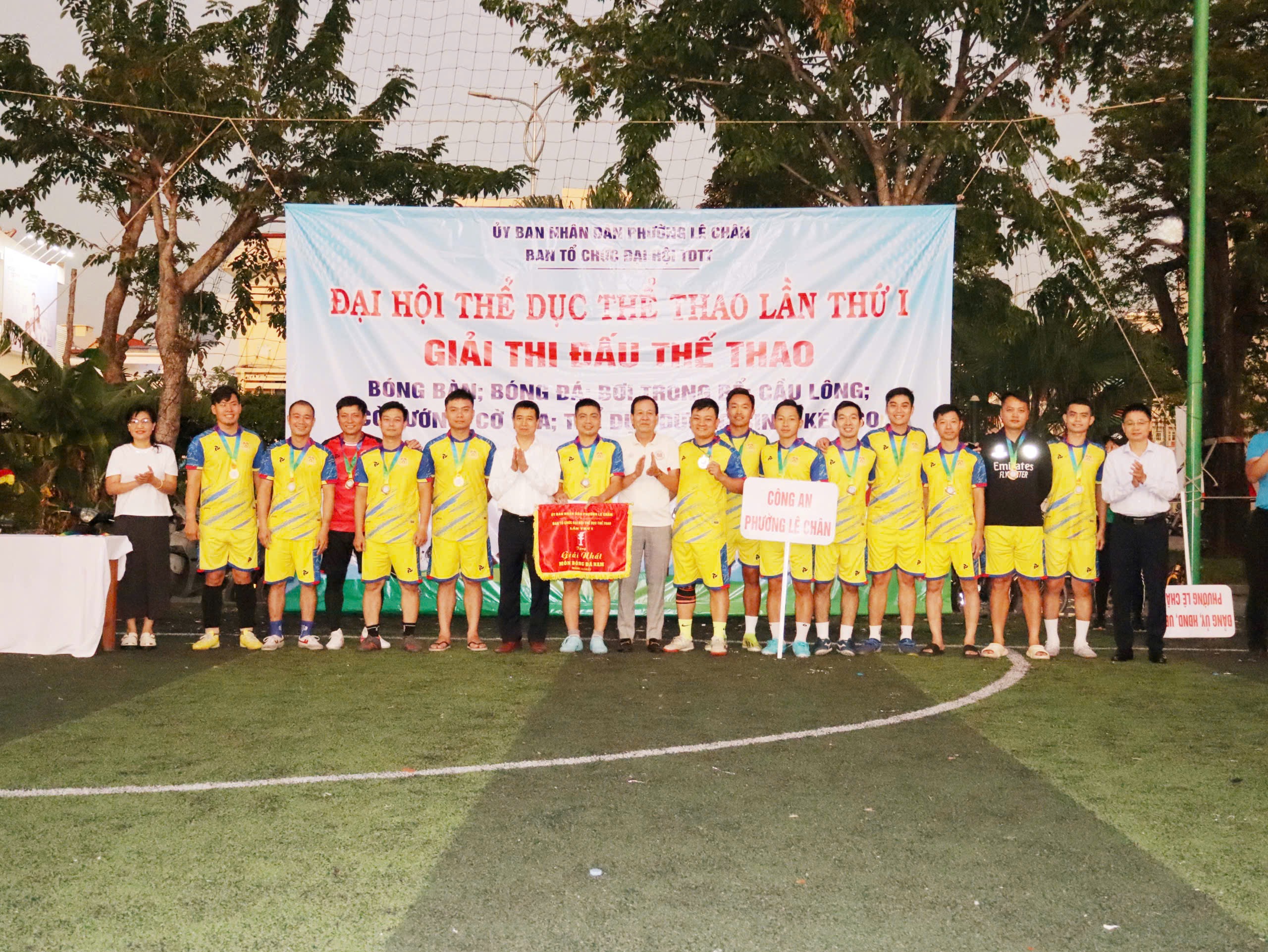 Giải Bóng đá nam – Đại hội Thể dục Thể thao phường Lê Chân lần thứ I năm 2025 đã khép lại thành công tốt đẹp, lan tỏa tinh thần đoàn kết, sức mạnh tập thể và khí thế thi đua sôi nổi trong toàn phường, hướng tới Đại hội Thể dục Thể thao thành phố Hải Phòng năm 2025.