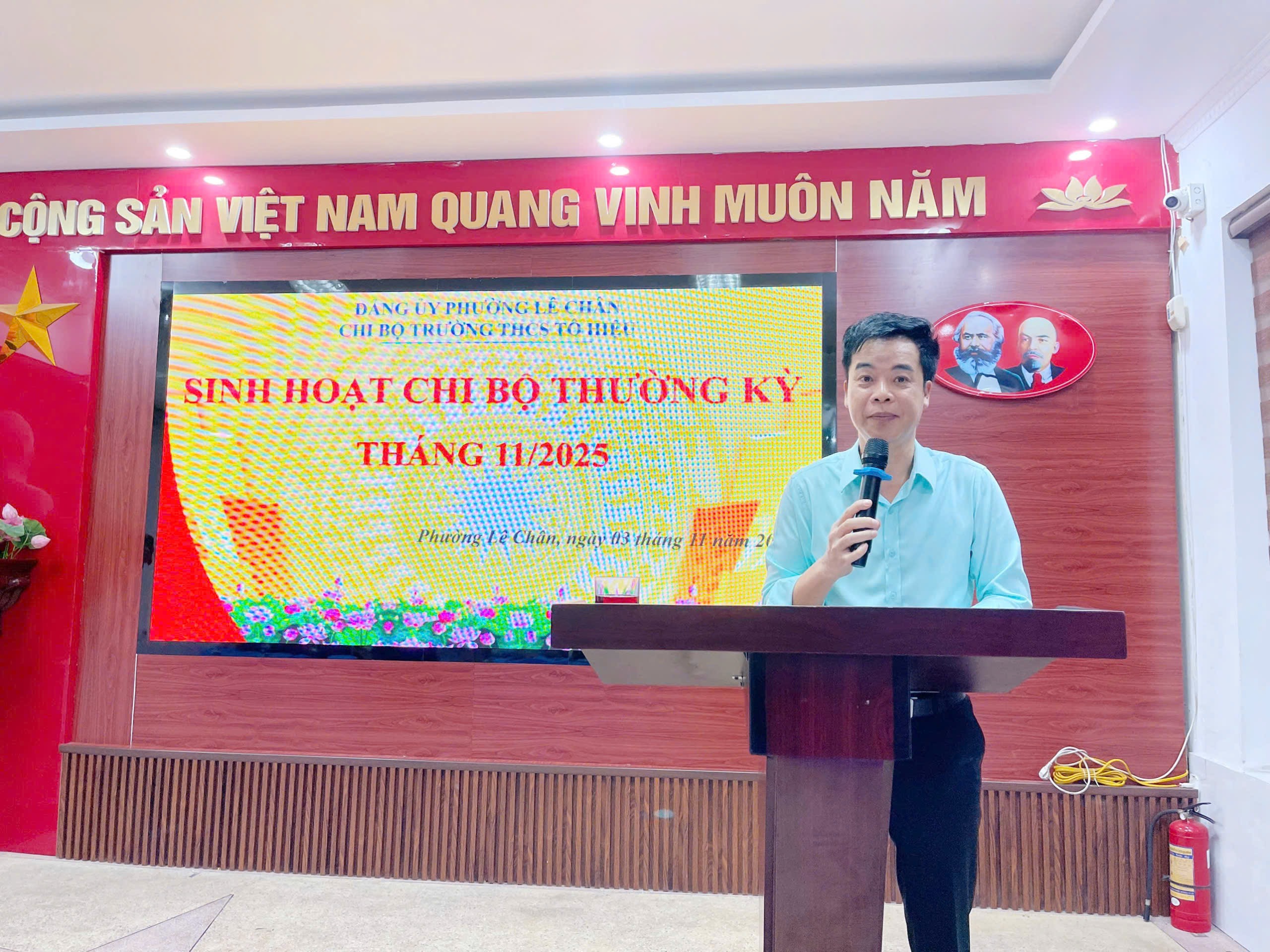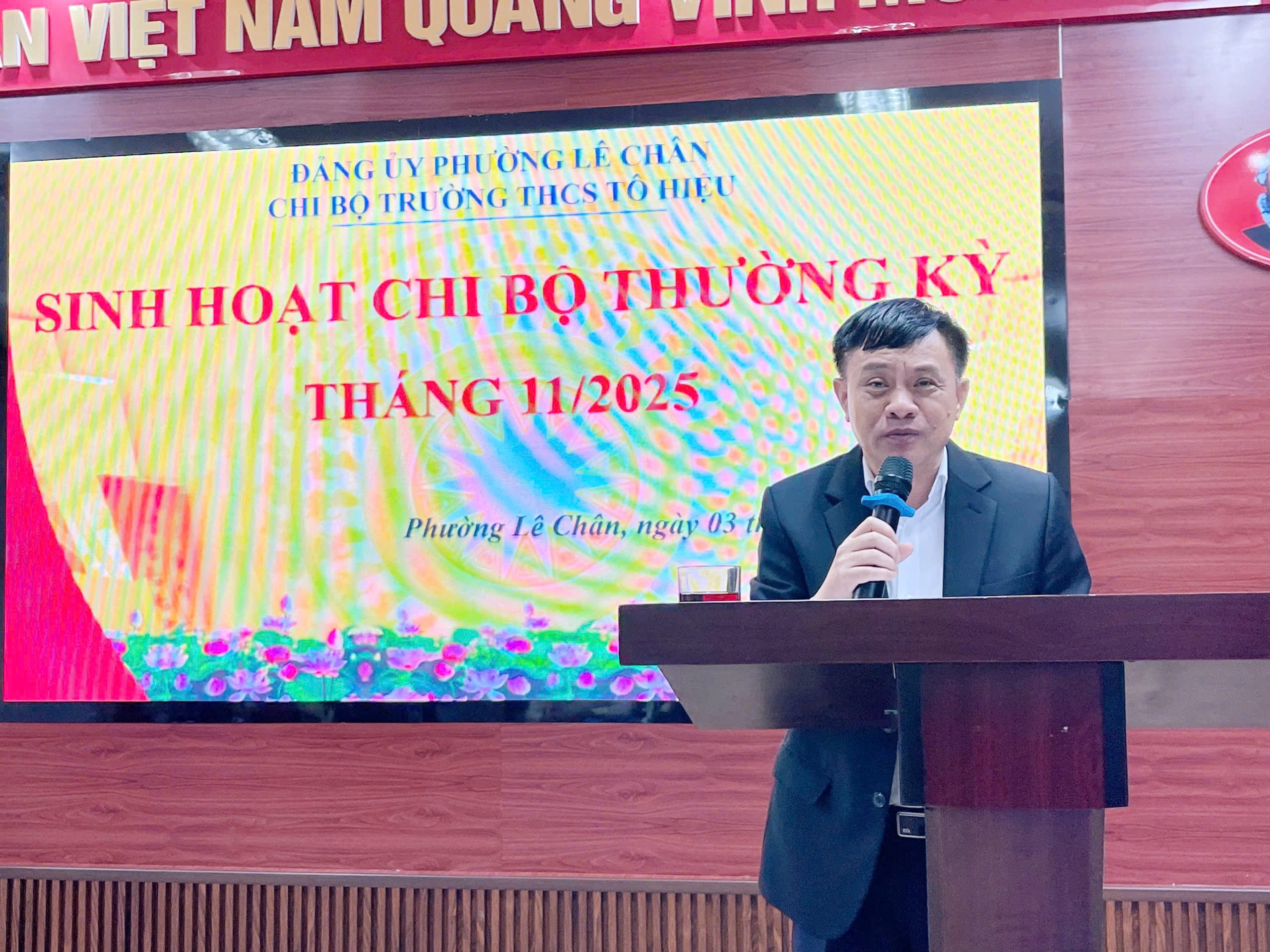Chiều 03/11/2025, tại Trường THCS Tô Hiệu, Đảng ủy phường Lê Chân tổ chức Hội nghị công bố Quyết định chỉ định chức danh Bí thư và Phó Bí thư Chi bộ nhiệm kỳ 2025 – 2030 và dự sinh hoạt Chi bộ thường kỳ của nhà trường.