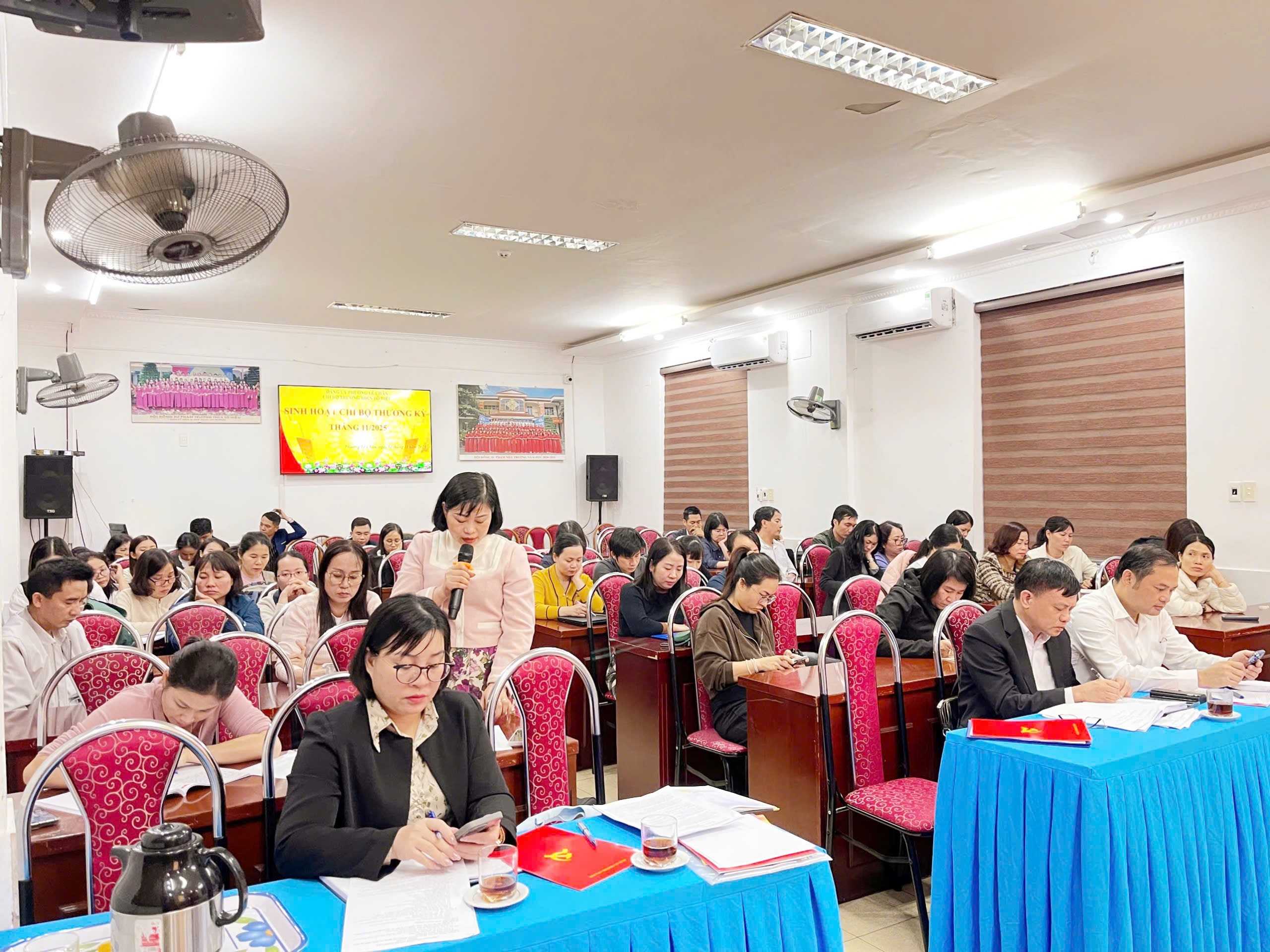 Ngay sau lễ công bố, Chi bộ nhà trường tiến hành sinh hoạt thường kỳ, đánh giá kết quả công tác tháng 10, triển khai nhiệm vụ tháng 11 và thảo luận các kiến nghị về tăng cường cơ sở vật chất phục vụ giảng dạy và tổ chức hoạt động.