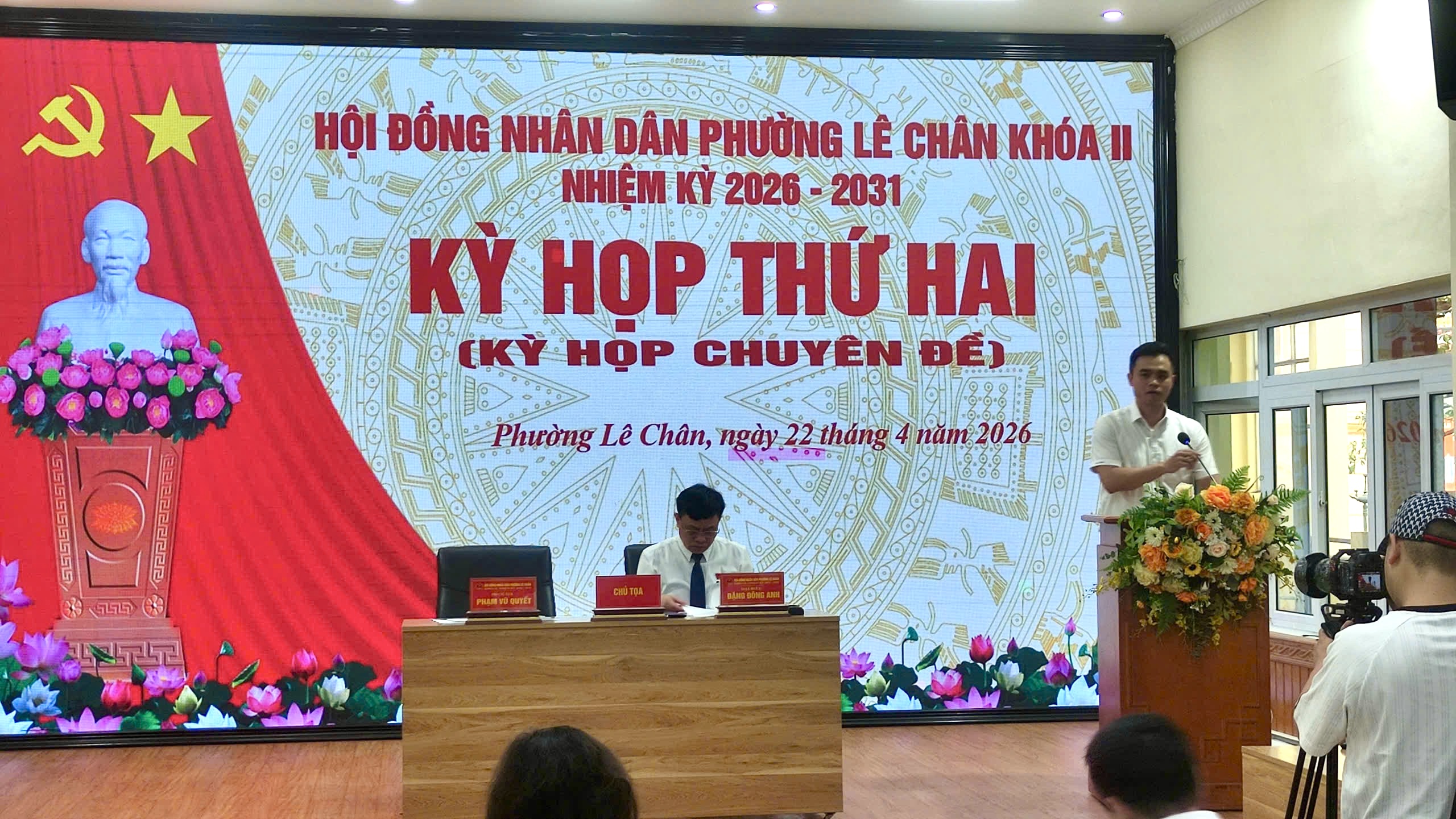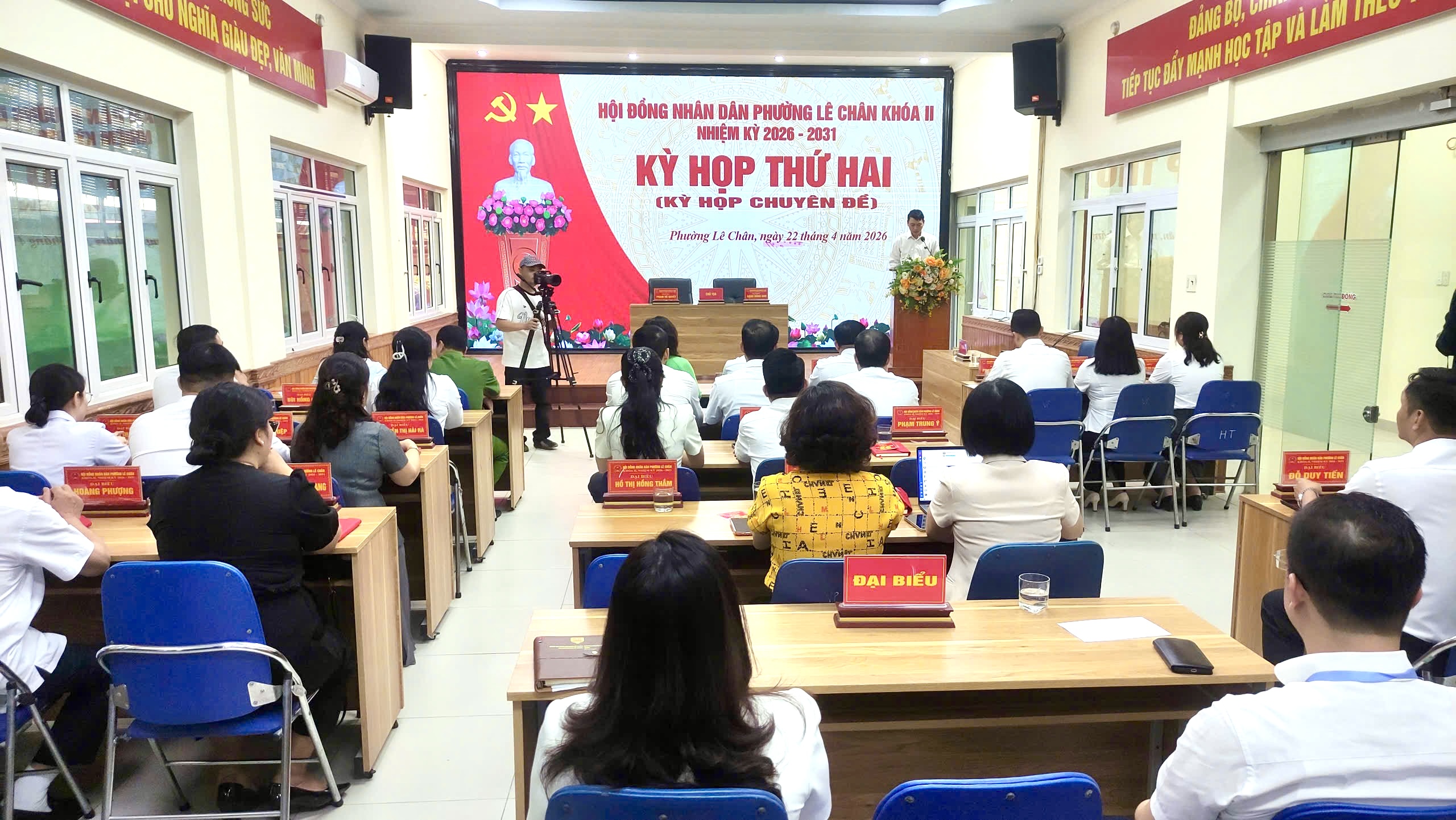 Sáng ngày 22/4/2026, tại Hội trường UBND phường Lê Chân (số 10G phố Hồ Sen), Hội đồng nhân dân phường Lê Chân khóa II, nhiệm kỳ 2026–2031 đã tổ chức kỳ họp thứ hai (kỳ họp chuyên đề) theo Kế hoạch số 03/KH-HĐND ngày 15/4/2026.