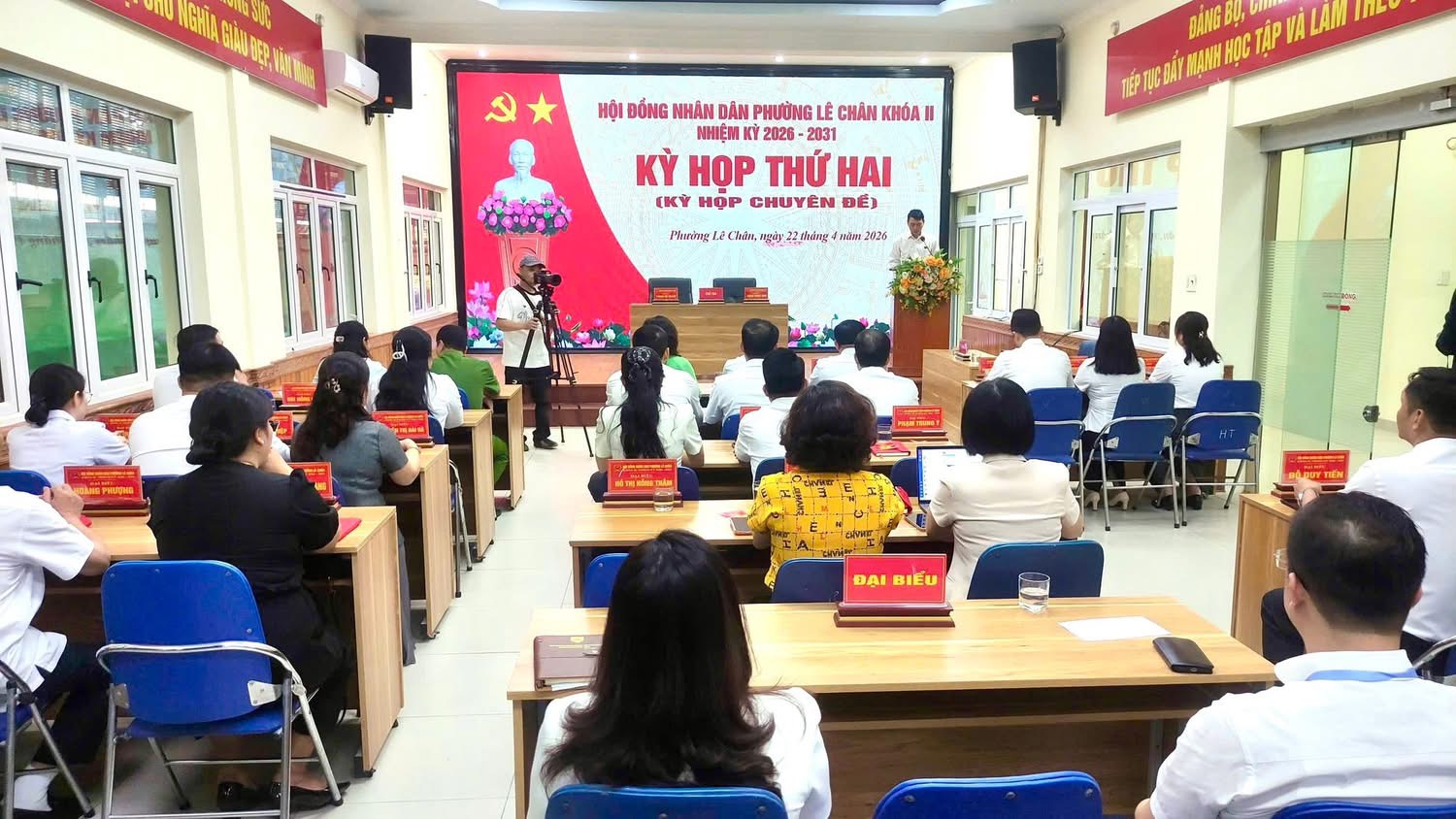 Sáng ngày 22/4/2026, tại Hội trường UBND phường Lê Chân (số 10G phố Hồ Sen), Hội đồng nhân dân phường Lê Chân khóa II, nhiệm kỳ 2026–2031 đã tổ chức kỳ họp thứ hai (kỳ họp chuyên đề) theo Kế hoạch số 03/KH-HĐND ngày 15/4/2026.