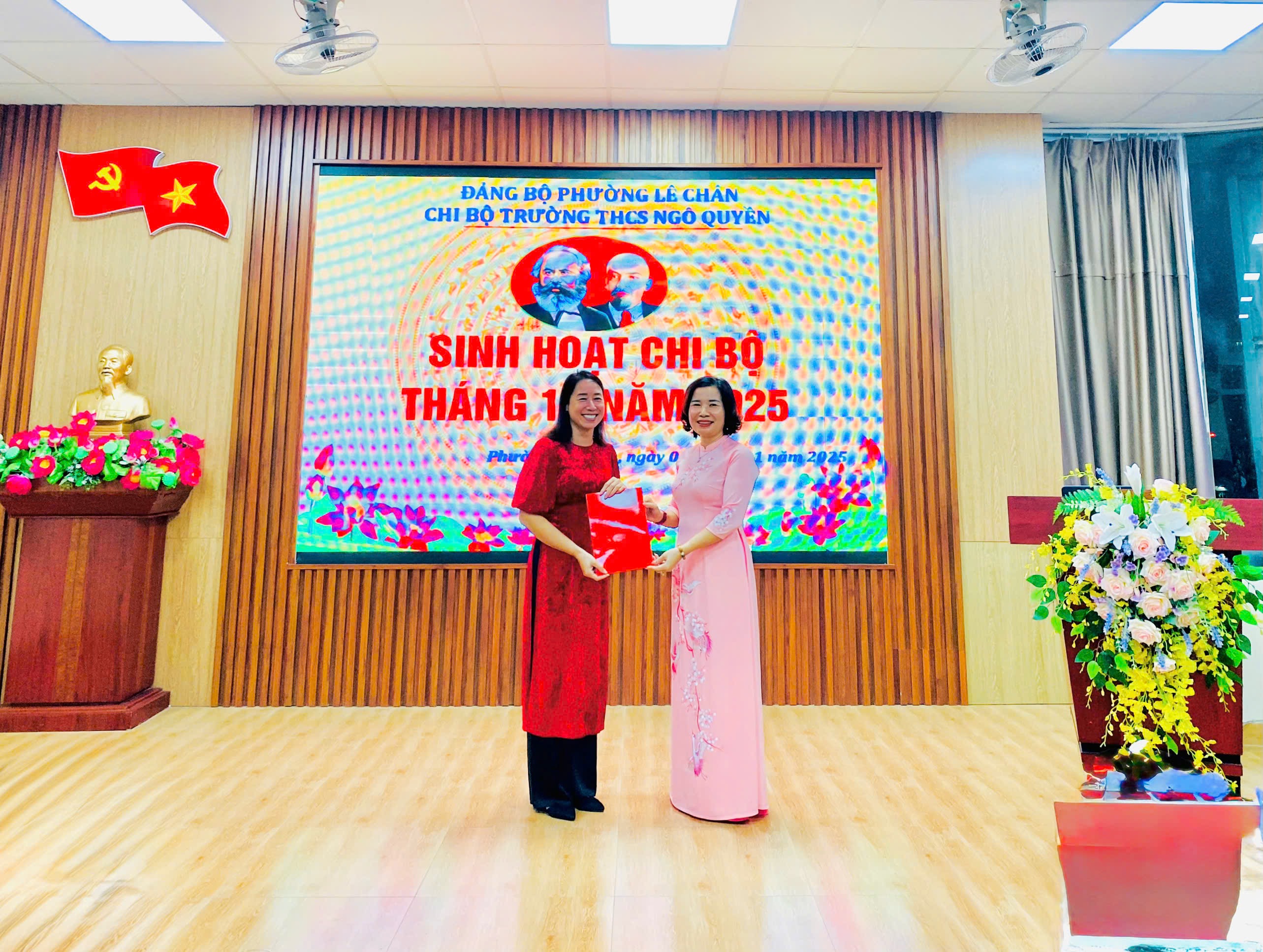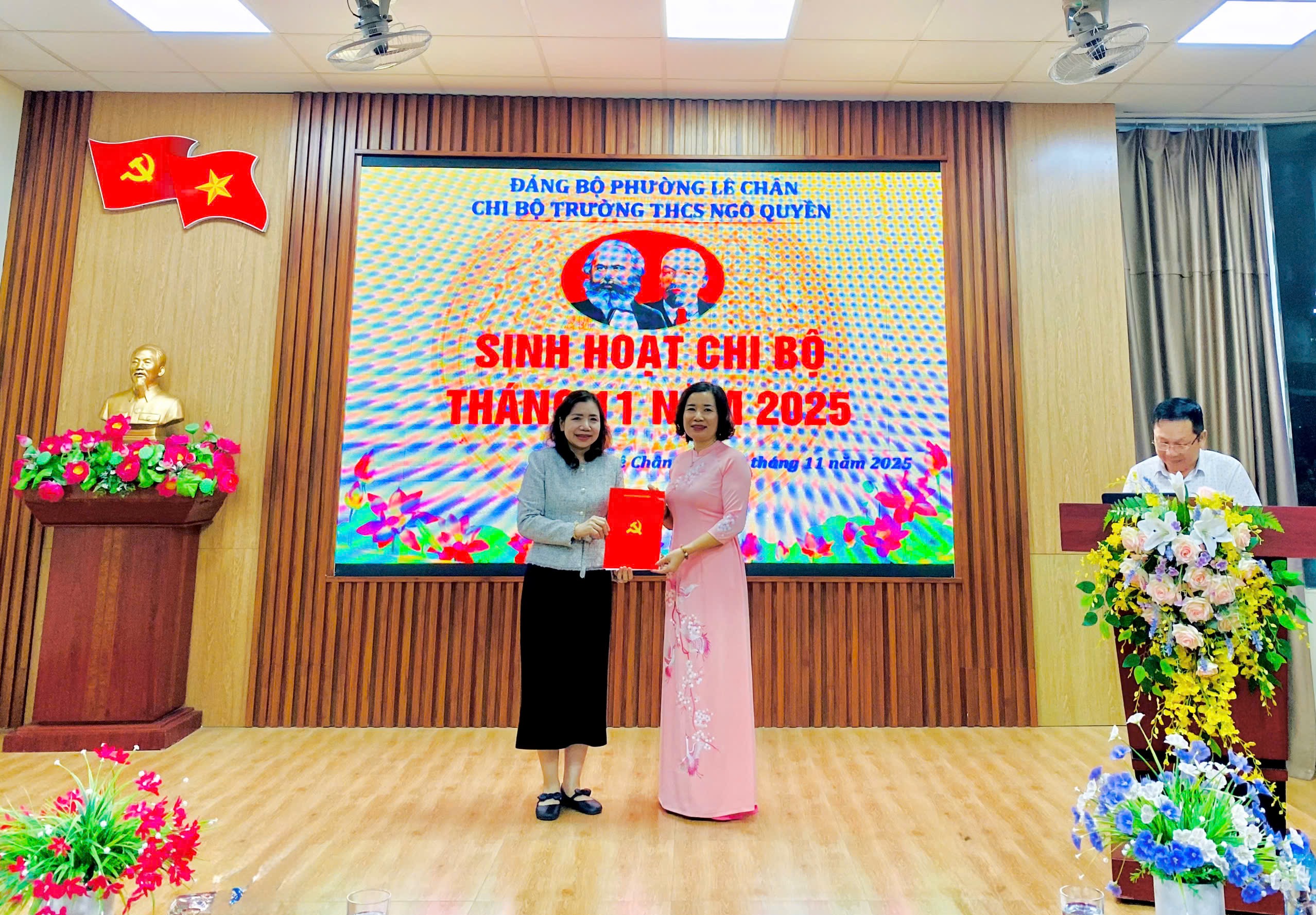 Chiều ngày 03/11/2025, tại Trường THCS Ngô Quyền, Đảng ủy phường Lê Chân tổ chức Hội nghị công bố Quyết định chỉ định chức danh Bí thư và bổ nhiệm lại chức danh Phó Bí thư Chi bộ Trường THCS Ngô Quyền nhiệm kỳ 2025 – 2030, đồng thời dự sinh hoạt Chi bộ thường kỳ của nhà trường.