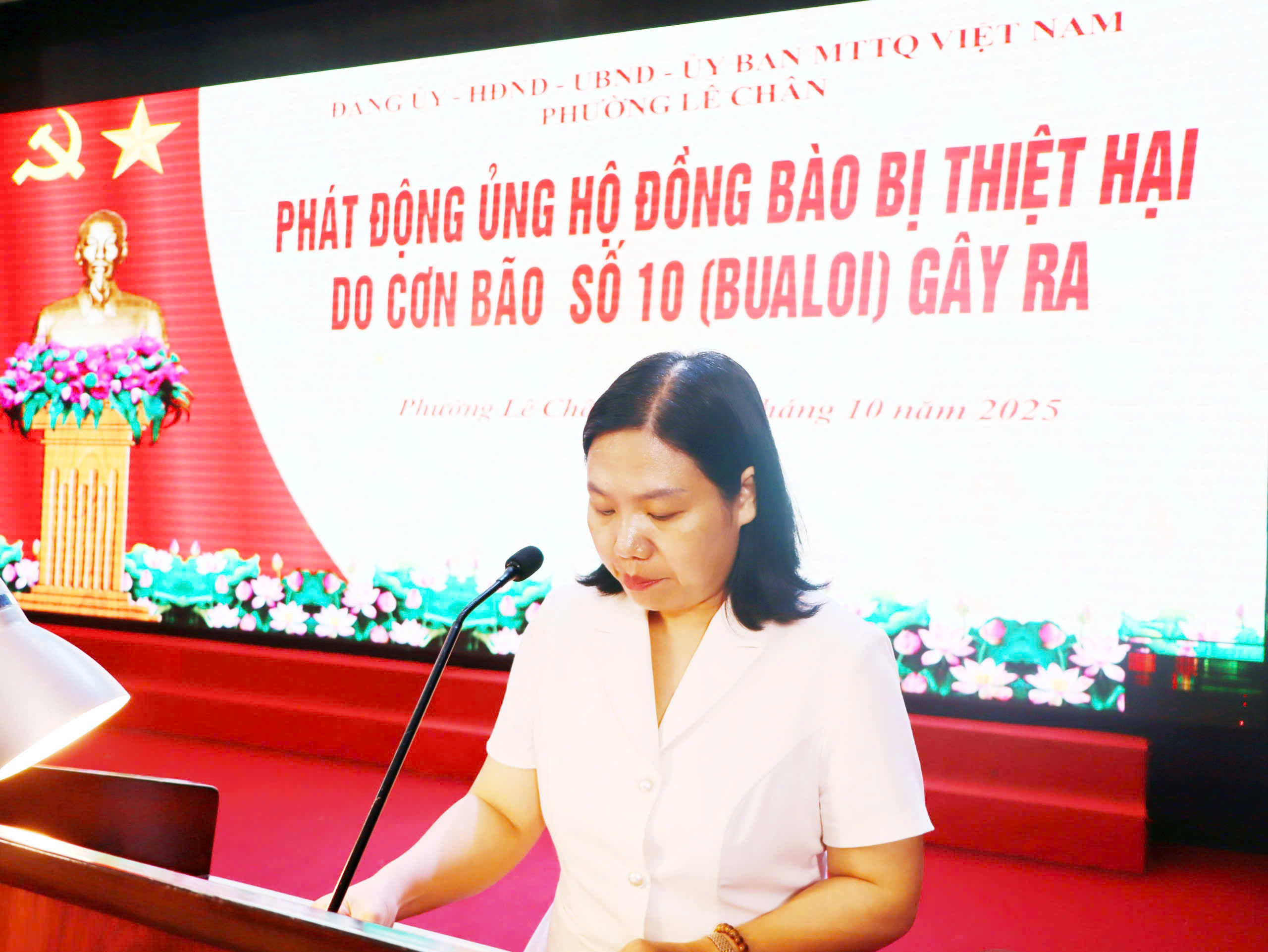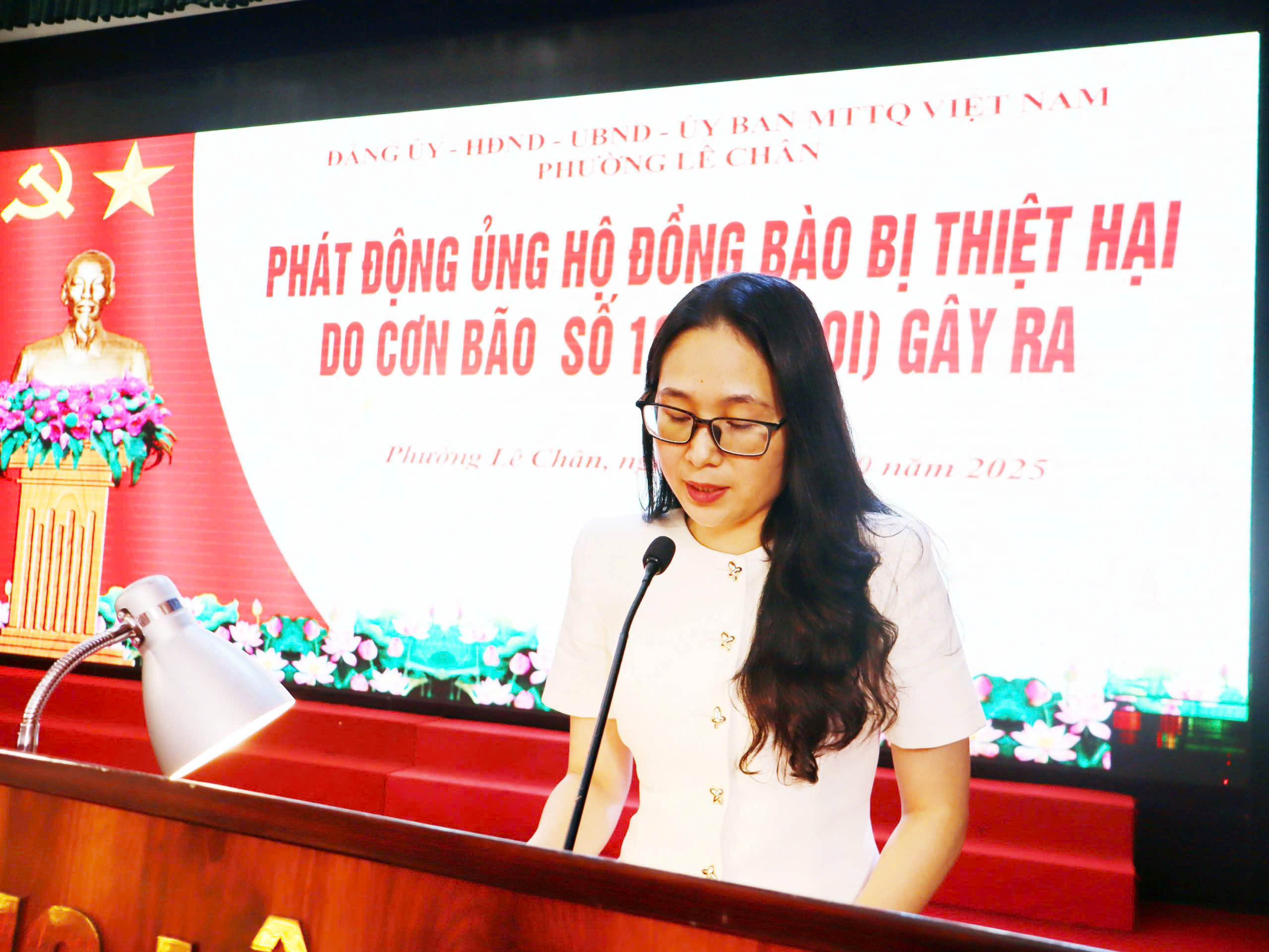 Phát biểu tại hội nghị, đồng chí Nguyễn Thị Phương Thảo – Chủ tịch Ủy ban MTTQ Việt Nam phường Lê Chân – đã chính thức phát động phong trào ủng hộ đồng bào vùng bão. Lời kêu gọi đã nhận được sự hưởng ứng nhiệt tình của các đại biểu, thể hiện tinh thần đoàn kết, tương thân tương ái – truyền thống quý báu của dân tộc Việt Nam.