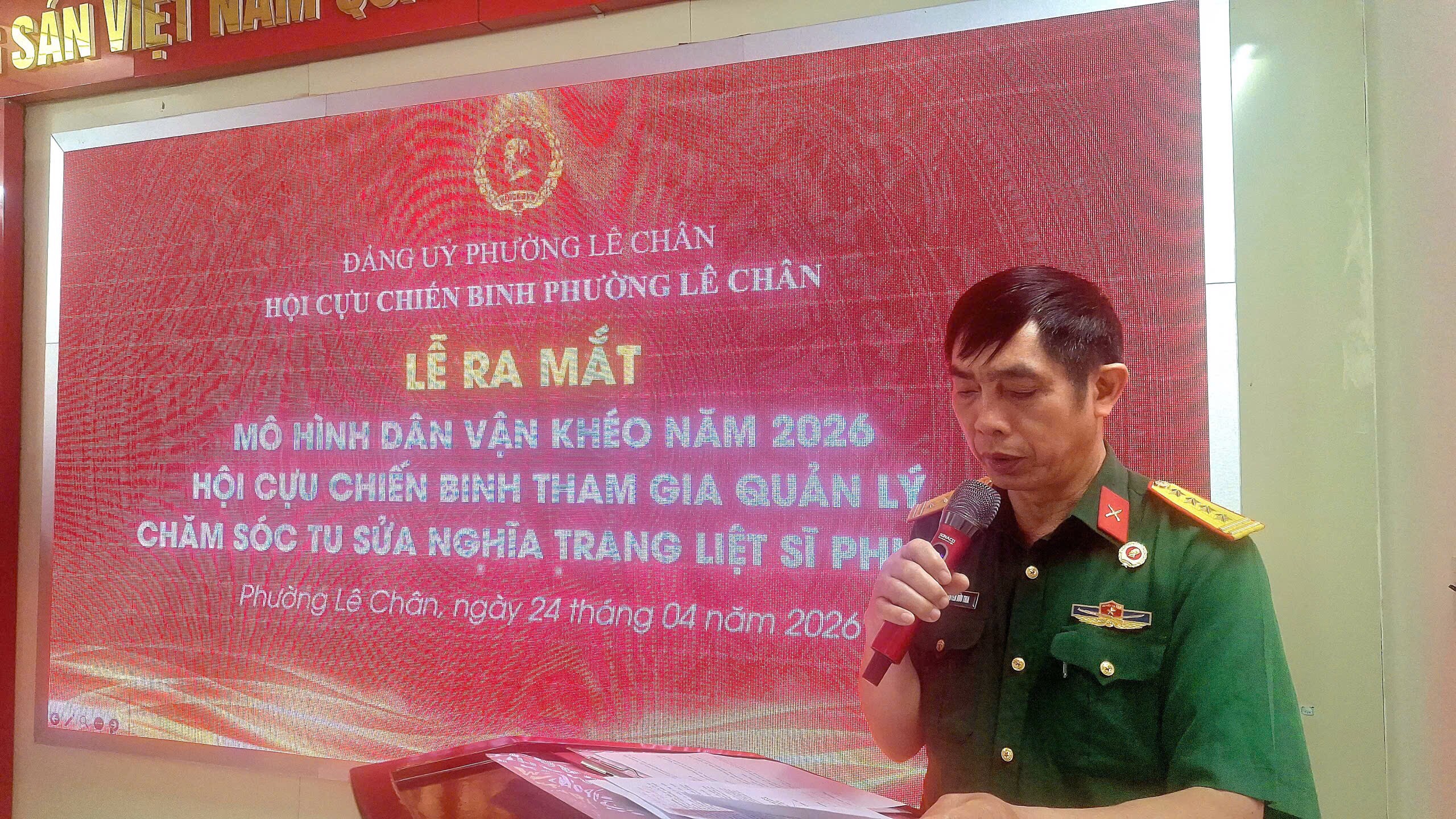 Sáng ngày 24/4/2026, Hội Cựu chiến binh phường Lê Chân tổ chức ra mắt mô hình “Hội CCB phường tham gia quản lý, chăm sóc, tu sửa Nghĩa trang Liệt sỹ phường và Đền thờ Liệt sỹ Lê Chân”.