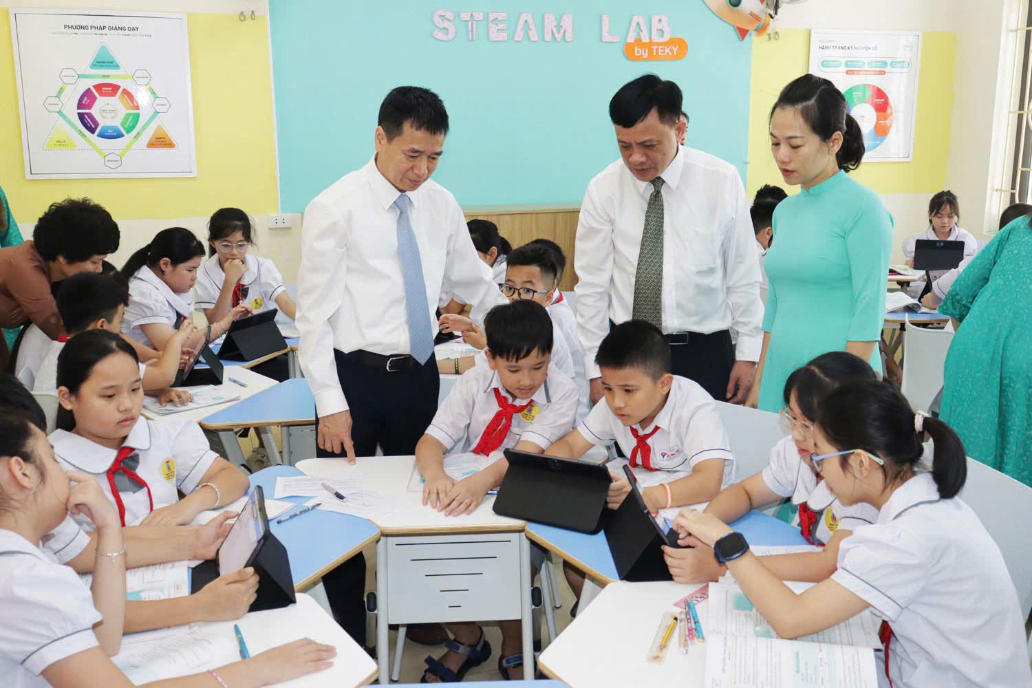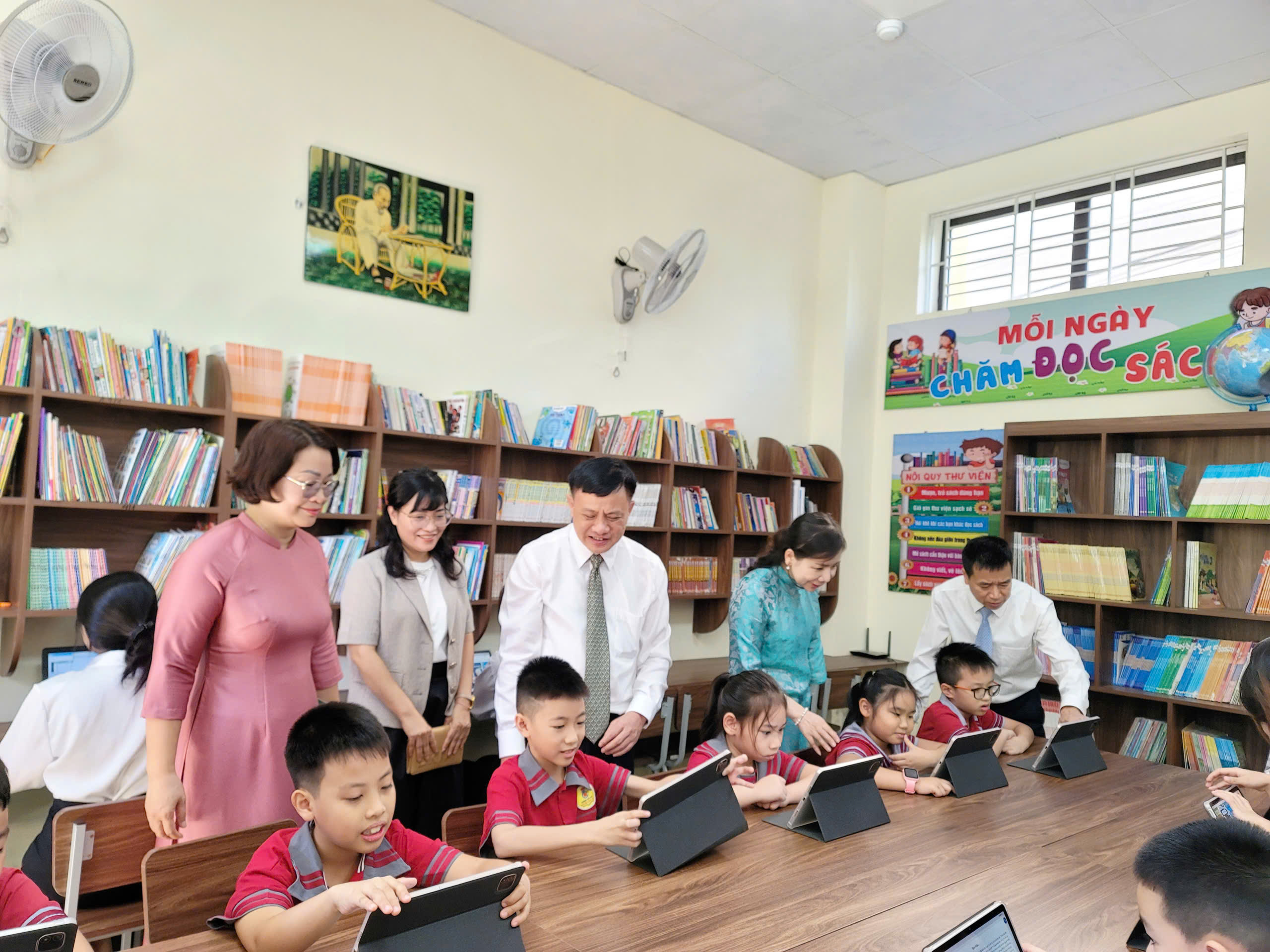 Cũng trong khuôn khổ chương trình, tại Trường Tiểu học Nguyễn Công Trứ, Thư viện số – Không gian học tập mở chính thức được đưa vào hoạt động. Đây là không gian học tập trực tuyến an toàn, thân thiện, nơi giáo viên và học sinh có thể truy cập, chia sẻ và khai thác nguồn học liệu phong phú phục vụ dạy – học và rèn luyện kỹ năng số. Đặc biệt, hệ thống quản lý thư viện số cho phép giáo viên theo dõi, định hướng học sinh sử dụng tài liệu hiệu quả, từng bước hình thành thói quen học tập thông minh trong môi trường số.