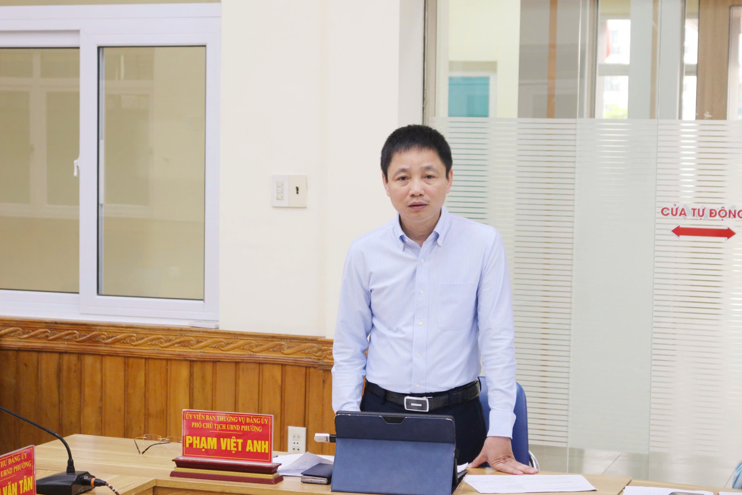 Đồng chí Phạm Văn Tân – Phó Bí thư Đảng ủy, Chủ tịch UBND phường chủ trì hội nghị. Tham dự có các đồng chí Phó Chủ tịch UBND phường, lãnh đạo các phòng, ban, đơn vị và cán bộ, chuyên viên liên quan.