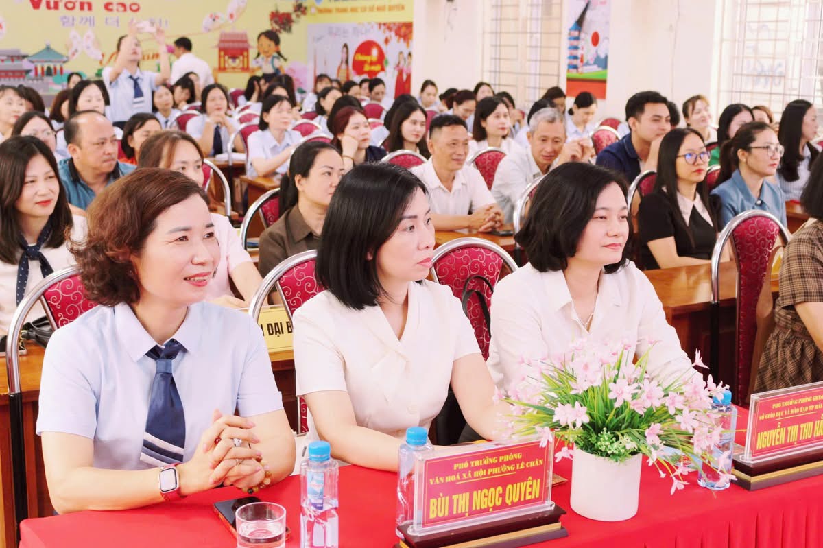 Dự chuyên đề có các đồng chí: Nguyễn Thị Thu Hằng - Phó Trưởng phòng THCS, Sở GD & ĐT; Bùi Thị Ngọc Quyên - Phó Trưởng phòng Văn hóa - Xã hội phường; Trần Thị Kim Xuyến - Bí thư Chi bộ, Hiệu Trưởng Trường THCS Ngô Quyền; đại diện chuyên viên các bộ môn Toán, Ngữ văn, Tiếng Anh thuộc Sở; cùng tập thể giáo viên, học sinh các đơn vị liên quan tham gia chuyên đề.