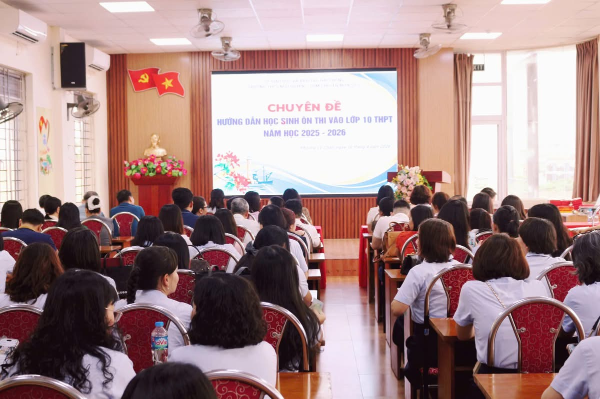 Tổ chức chuyên đề nhằm giao lưu, học hỏi, hỗ trợ chuyên môn, trao đổi và chia sẻ kinh nghiệm ôn thi; thể hiện rõ cách làm hiệu quả; góp phần nâng cao chất lượng dạy và học trong giai đoạn nước rút. Đây cũng là dịp để đội ngũ cán bộ, quản lý, giáo viên cùng rà soát, điều chỉnh và thống nhất các giải pháp chuyên môn, tăng cường sự phối hợp, hỗ trợ lẫn nhau nhằm hướng tới mục tiêu chung: nâng cao kết quả thi tuyển sinh vào lớp 10 THPT một cách thực chất, bền vững. Kết nối để lan tỏa - Đồng hành để nâng cao - Vững vàng để bứt phá!