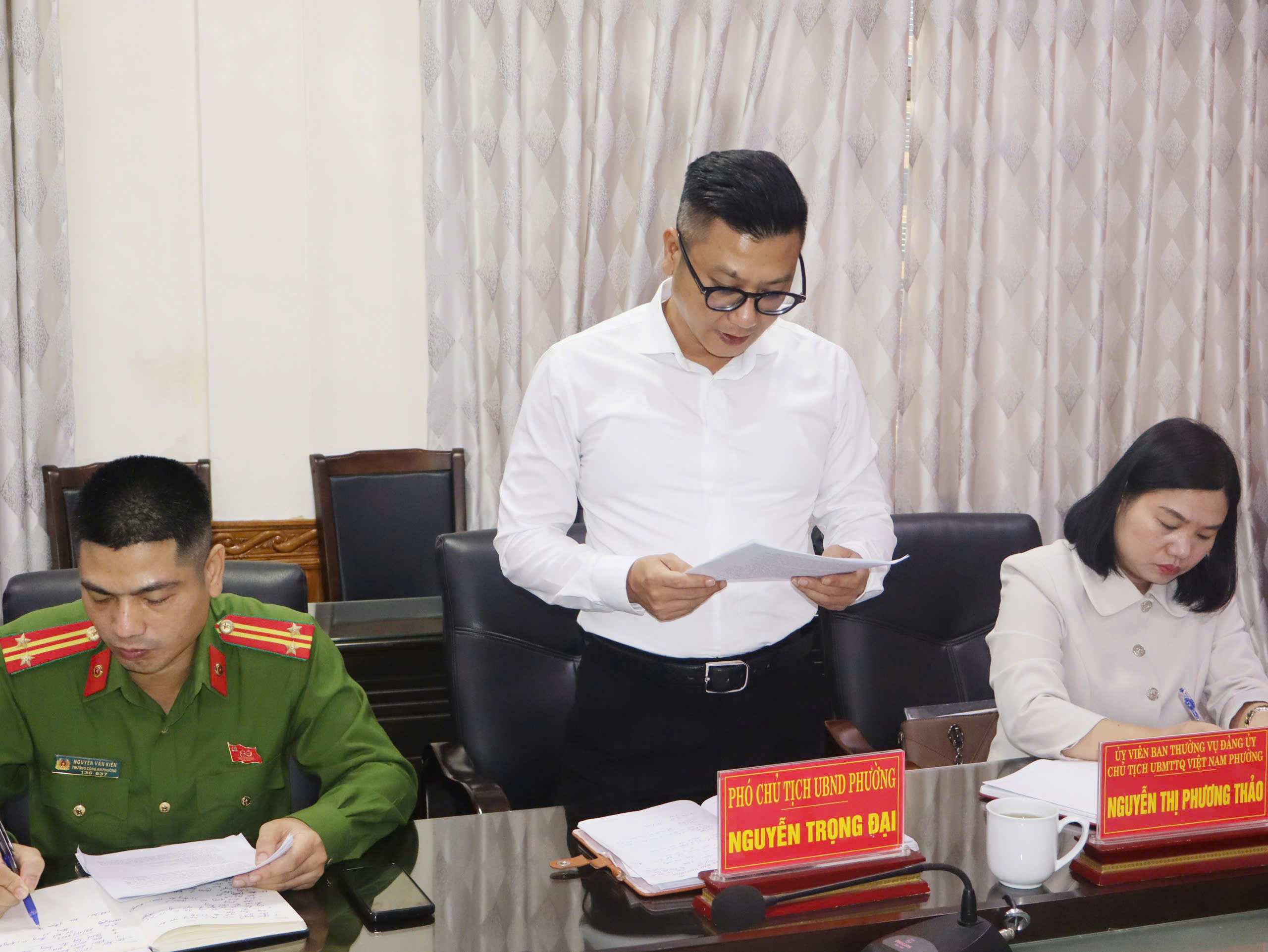 Dự và chủ trì Hội nghị có đồng chí Phạm Văn Tân – Phó Bí thư Đảng ủy, Chủ tịch UBND phường; cùng dự có đồng chí Nguyễn Thị Phương Thảo – Ủy viên Ban Thường vụ Đảng ủy, Chủ tịch Ủy ban MTTQ Việt Nam phường; các đồng chí Phó Chủ tịch UBND; đại diện lãnh đạo các tổ chức chính trị - xã hội; Công an, Ban Chỉ huy Quân sự phường; cùng lãnh đạo các cơ quan, đơn vị liên quan và công chức các bộ phận chuyên môn thuộc UBND phường.