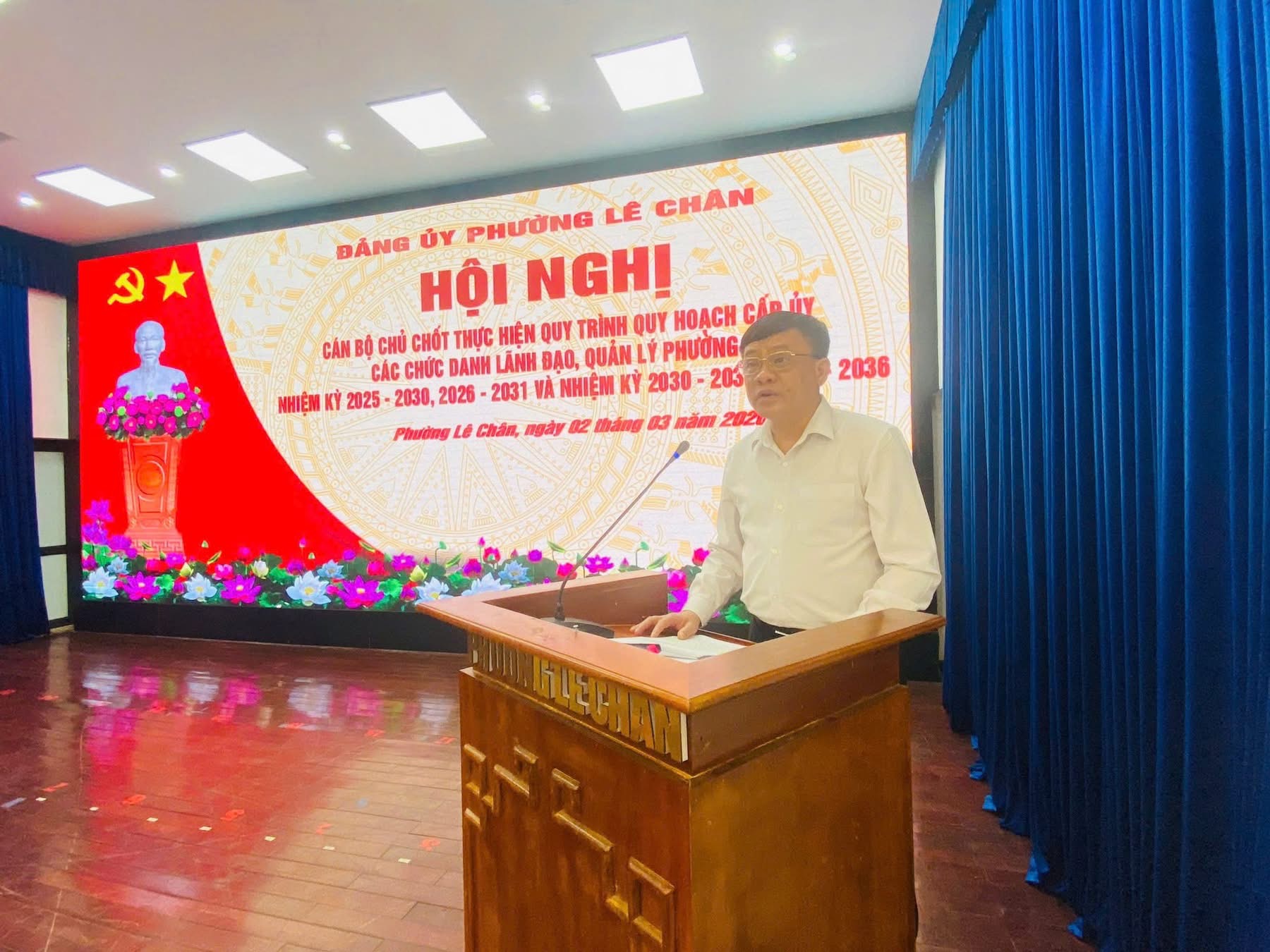 Sáng 02/3/2026, tại Hội trường Đảng ủy, Đảng ủy phường Lê Chân tổ chức Hội nghị cán bộ chủ chốt thực hiện quy hoạch cấp ủy, các chức danh lãnh đạo, quản lý phường nhiệm kỳ 2025 – 2030, 2026 – 2031 và nhiệm kỳ 2030 – 2035, 2031 – 2036.